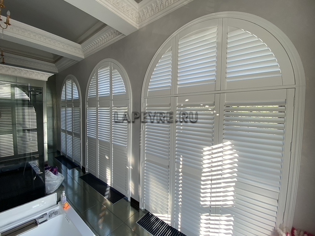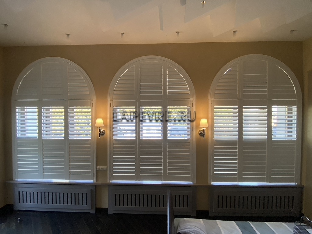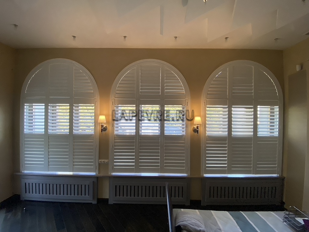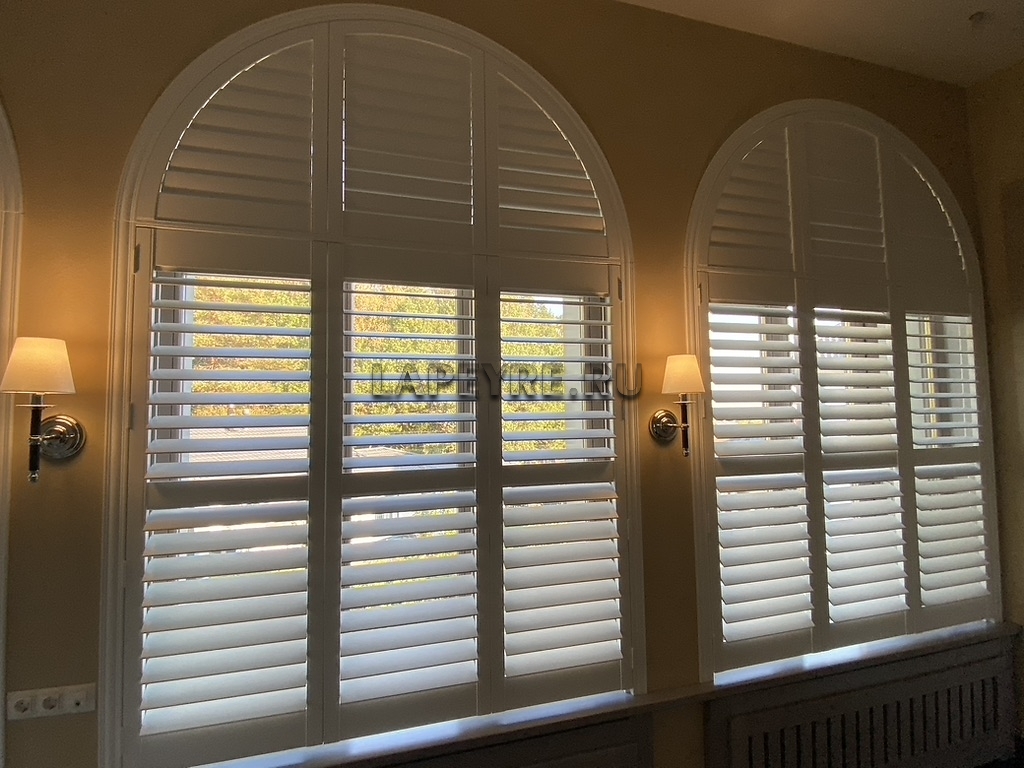 Сейчас уже ни кого не удивишь большимы окнами в пол, которые открывают зачерованные виды на высотки и уютный садик в Вашем доме. Панорамное остекление в сочетании с качественной локацией - выгрышные позиции при выборе среды обитания. Однако наступает время, когда хочется уединения и покоя, и шторы не всегда решают эту задачу. Альтернатива, или даже сказать лучшее решение это шаттерсы (жалюзийные внутренние ставни с регулируемыми ламелями). Шаттерсы бывают разных форм: Стандартные (прямоугольные), арочные, круглые, в виде ромба, "французская дверь" (french door) - когда шаттерсы крепяться на раму створки. Арочные шаттерсы для арочных проемов во французских дома барона Османа - скорей всего единственное правильное решения. Шаттерсы не только позволяют регулировать световой поток, но и полностью перекрывать его, создавая почти полный "black out" даже в яркий солнечный день; выполненные из натурального дерева шаттерсы берегут прохладу и согревают Ваш дом в ненастье, да и просто великолепно смотрятся на окнах, освежая и украшая Ваш Интерьер.