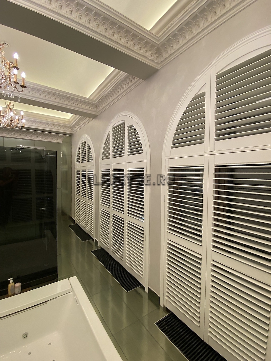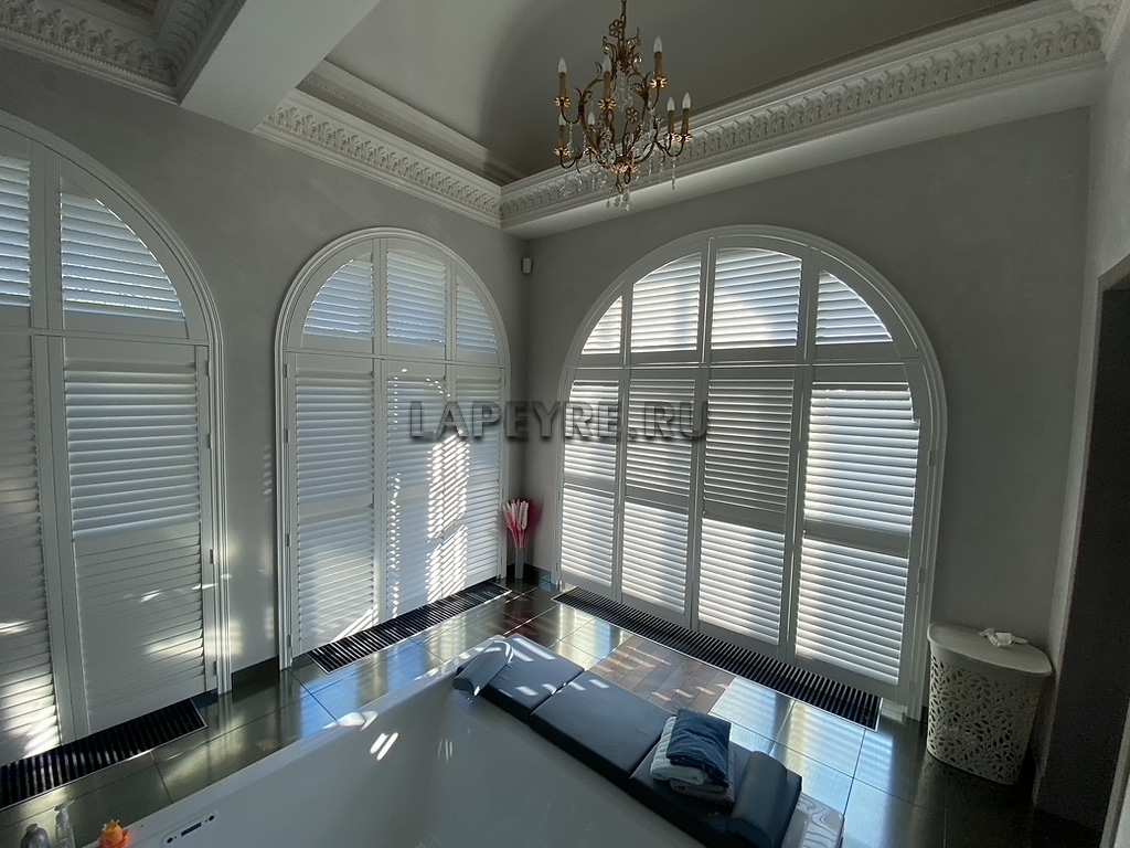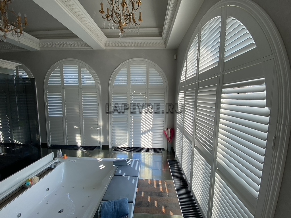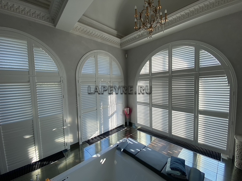 Сейчас уже ни кого не удивишь большимы окнами в пол, которые открывают зачерованные виды на высотки и уютный садик в Вашем доме. Панорамное остекление в сочетании с качественной локацией - выгрышные позиции при выборе среды обитания. Однако наступает время, когда хочется уединения и покоя, и шторы не всегда решают эту задачу. Альтернатива, или даже сказать лучшее решение это шаттерсы (жалюзийные внутренние ставни с регулируемыми ламелями). Шаттерсы бывают разных форм: Стандартные (прямоугольные), арочные, круглые, в виде ромба, "французская дверь" (french door) - когда шаттерсы крепяться на раму створки. Арочные шаттерсы для арочных проемов во французских дома барона Османа - скорей всего единственное правильное решения. Шаттерсы не только позволяют регулировать световой поток, но и полностью перекрывать его, создавая почти полный "black out" даже в яркий солнечный день; выполненные из натурального дерева шаттерсы берегут прохладу и согревают Ваш дом в ненастье, да и просто великолепно смотрятся на окнах, освежая и украшая Ваш Интерьер.