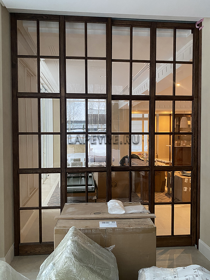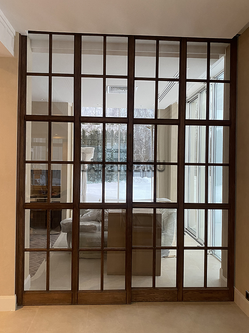Большая межкомнатная перегородка от стены до стены, массив дуба.