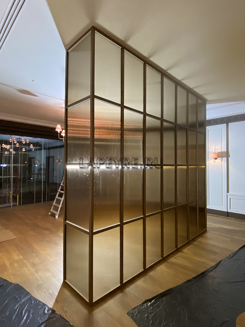 Классическая межкомнатная перегородки, «Habitat a vitrer» с верхними и боковыми импостами с раскладкой, материал — аюс комбинируемый, финишная отделка — Т1/Т3